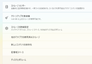 そして ストレージの詳細設定を選択 そしてディスクとボリュームを選択