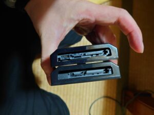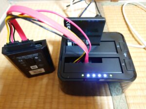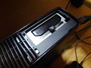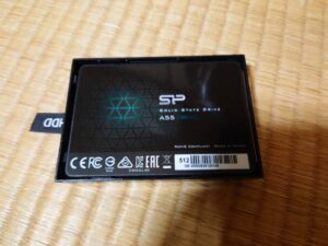 まず前もって2.5インチSSDを購入しておいて ケースに入れてPCと接続しておかなきゃいけないんですけど